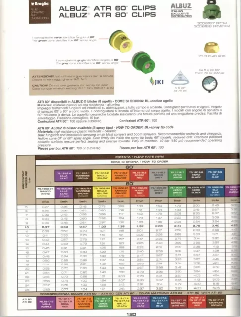 Da questa tabella si evince l’ugello giusto da operare ad una determinata pressione. In questo caso l’ugello corrispondente a 0.95 è quello indicato dal colore marrone con una pressione da 21 bar. In alternativa, l’ugello giallo con una pressione compresa tra gli 8 e i 9 bar.