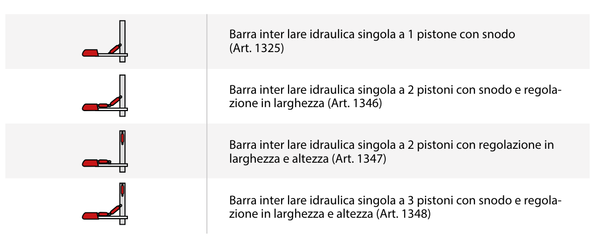 - Barra interfilare idraulica singola a 1 pistone con snodo